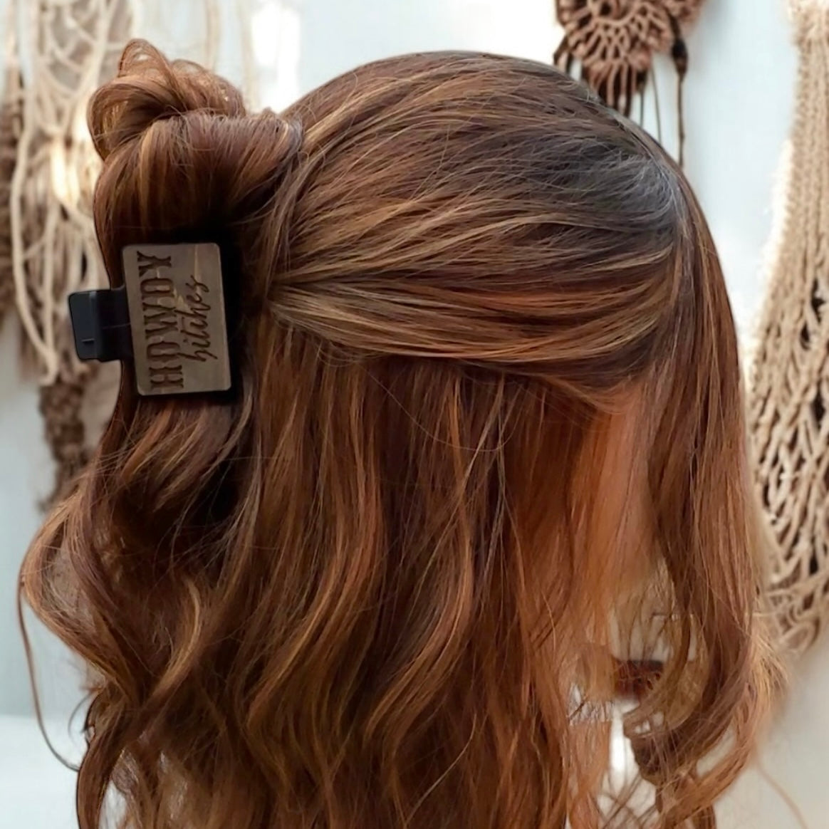 Howdy Bitches Engraved Claw Clip: Show off your sass with this 2" wooden claw clip that says "howdy bitches." Keep your hair in place and make a statement at the same time. Perfect for adding a touch of humor to any hairstyle.