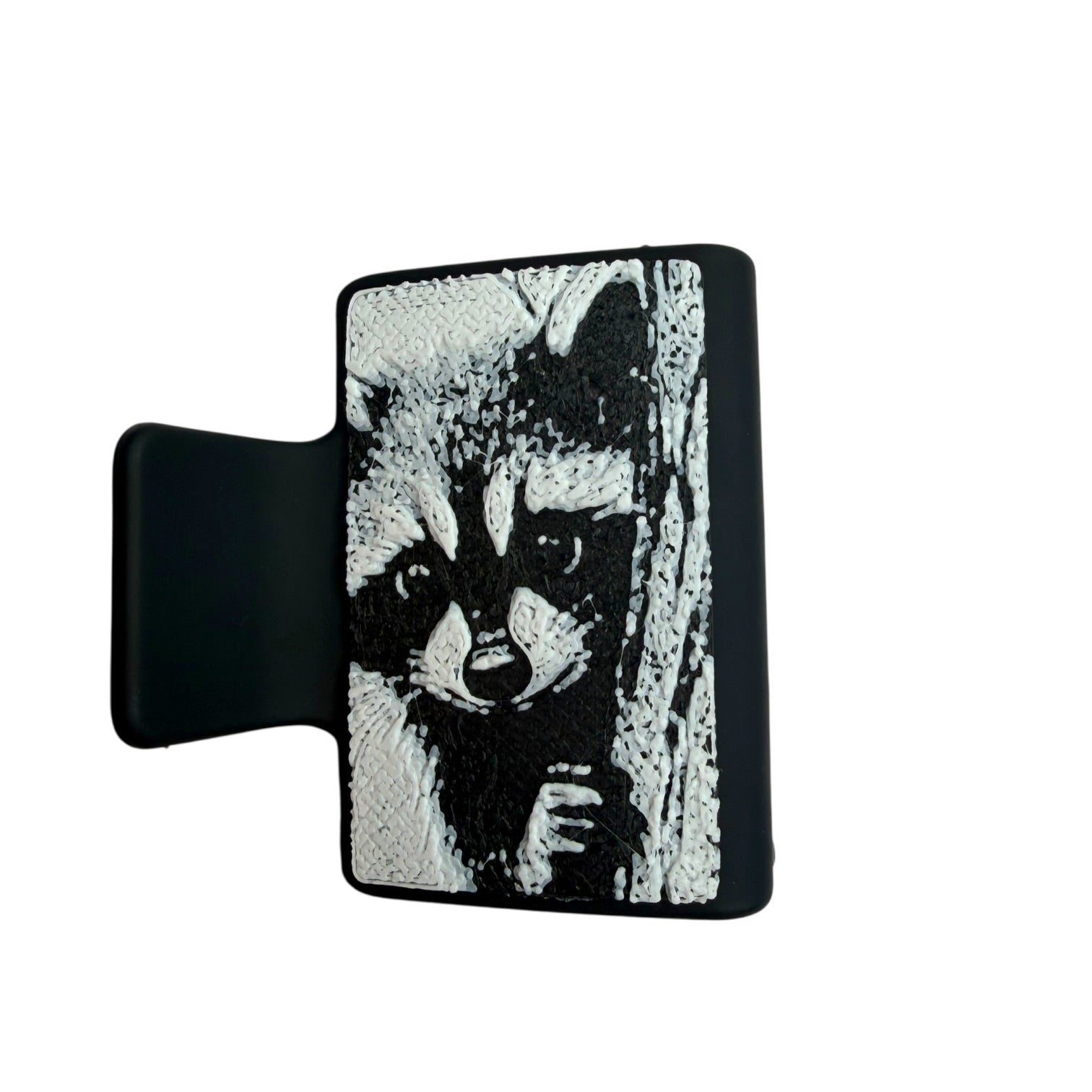 Catch your unruly locks with our playful and sneaky raccoon large hair claw clip. Measuring at 2 inches, this 3D printed matte claw clip will hold your hair securely while adding a touch of quirky style. Don't let this cutie get away!