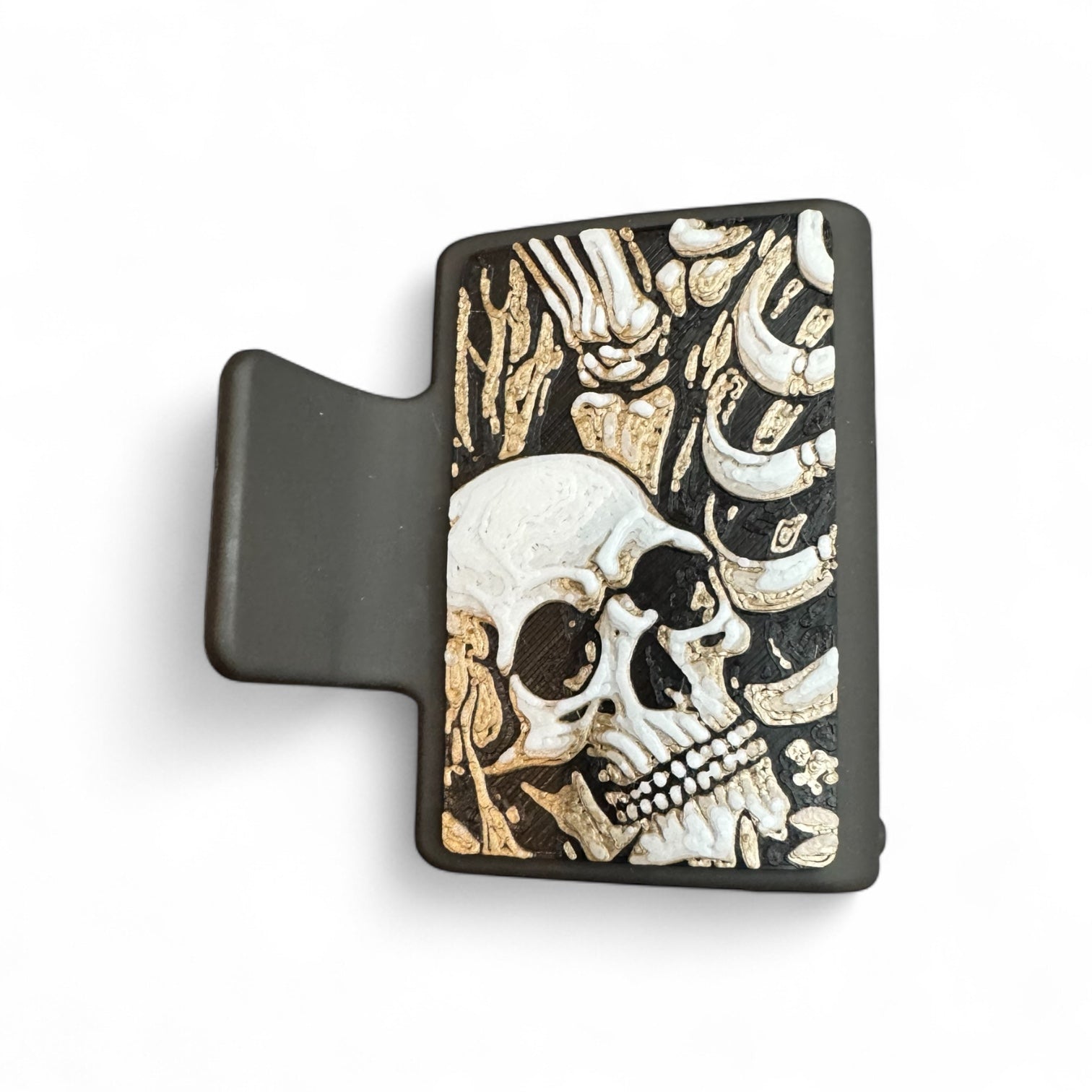 This Skeleton Small Hair Claw Clip features a unique, 3D printed design attached to a 2" clip. Made with precision and expertise, this clip is perfect for adding a touch of style and holding smaller sections of hair in place. A must-have accessory for any hair styling collection.